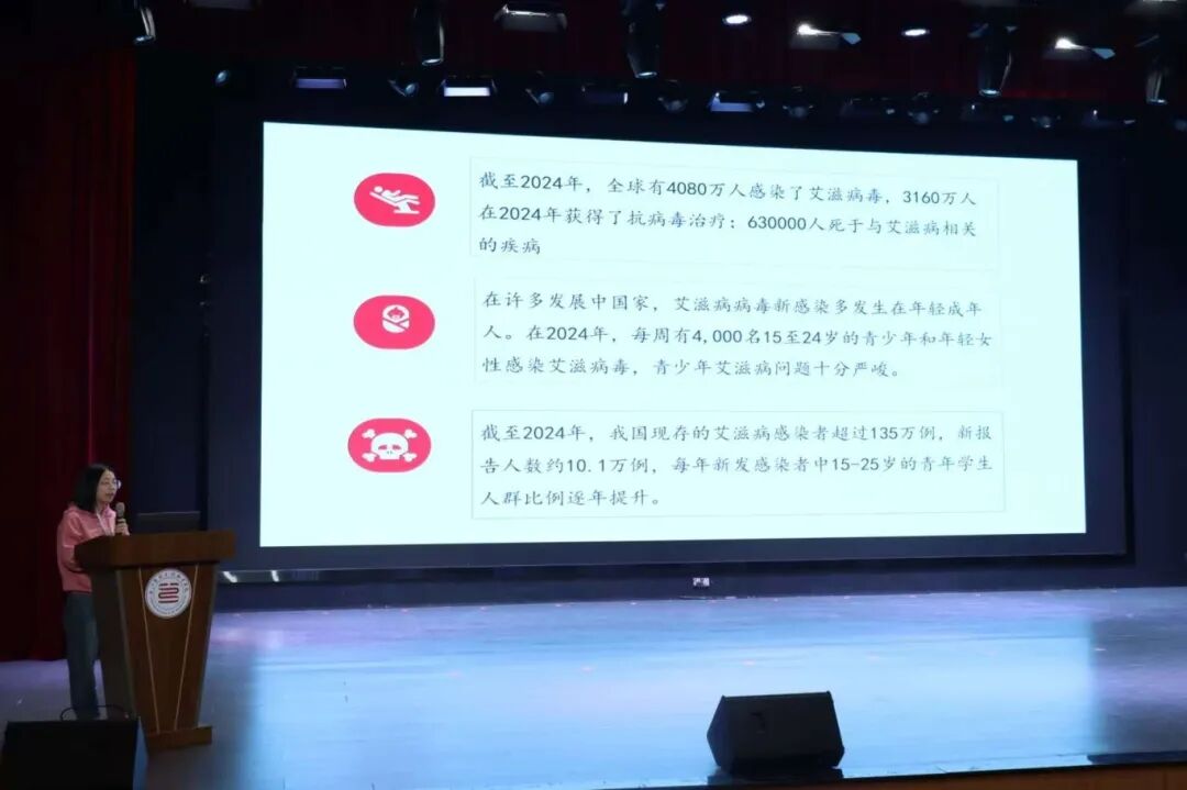 讲座中,荆州市疾病预防控制中心的冯亚楠医生系统地为学生讲解了艾滋病的致病机制与科学预防方法,并针对“日常交往是否会传染”“如何正确做好防护”等学生普遍关心的认知误区进行了专业、通俗的澄清。讲座过程中穿插的有奖问答环节更是将现场气氛推向高潮,同学们积极思考,踊跃抢答,在轻松愉快的互动中巩固了所学知识,实现了从“知识输入”到“能力提升”的有效转化。