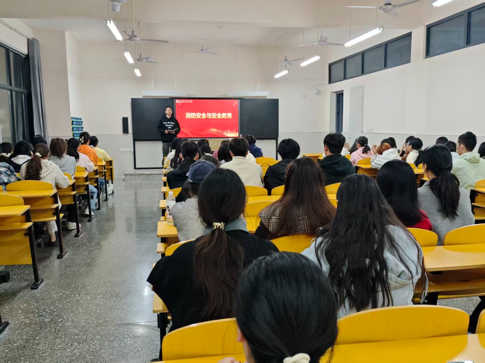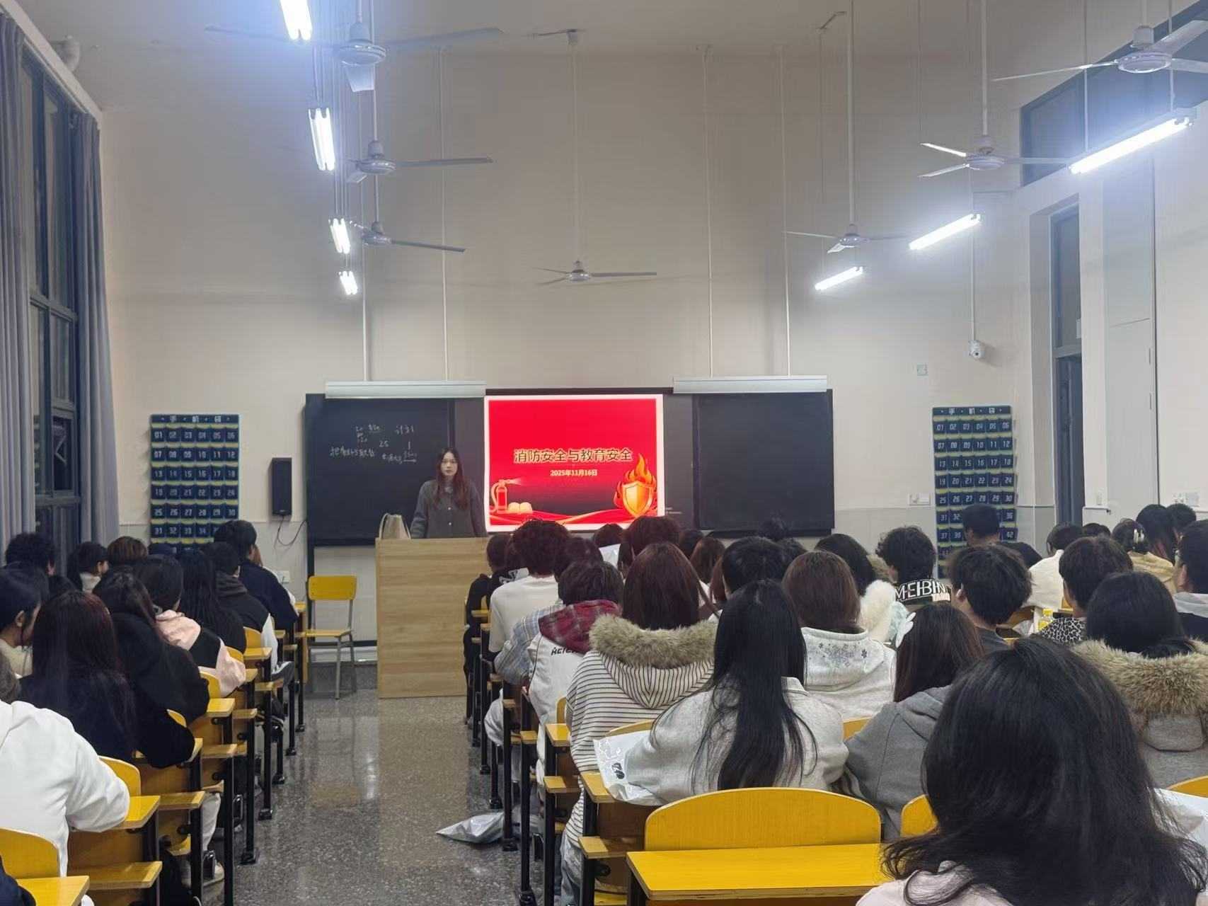 消防安全方面,辅导员们紧扣11月全国消防安全宣传月主题,针对冬季低温特点,重点强化宿舍用电安全管理:明确禁止使用电暖宝、电热毯等大功率取暖设备,强调“人走断电”铁律;同步推荐40℃热水泡脚、使用3C认证的暖水袋等安全取暖措施。对于实训室消防,辅导员配合灭火器“提、拔、握、压”四步操作法的实操演练,以及火灾疏散时“低姿弯腰、捂口鼻”的应急动作拆分教学,确保学生掌握关键自救技能。