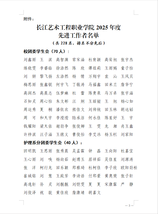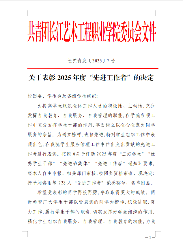 关于表彰长江艺术工程职业学院2025年度“三好学生”“优秀学生干部”“先进班集体”的决定